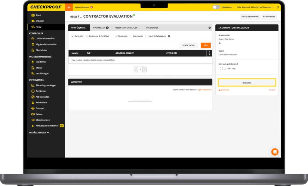 Från CheckProof-startsidan, klicka på “Ronder” i sidopanelens meny för att visa en lista över ronder. Välj nu den rond som du vill ansluta en