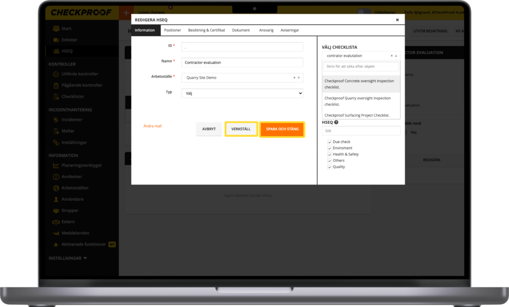 Nu när du har valt en checklista, klicka på “Verkställ” och sedan på “Spara och Stäng”.