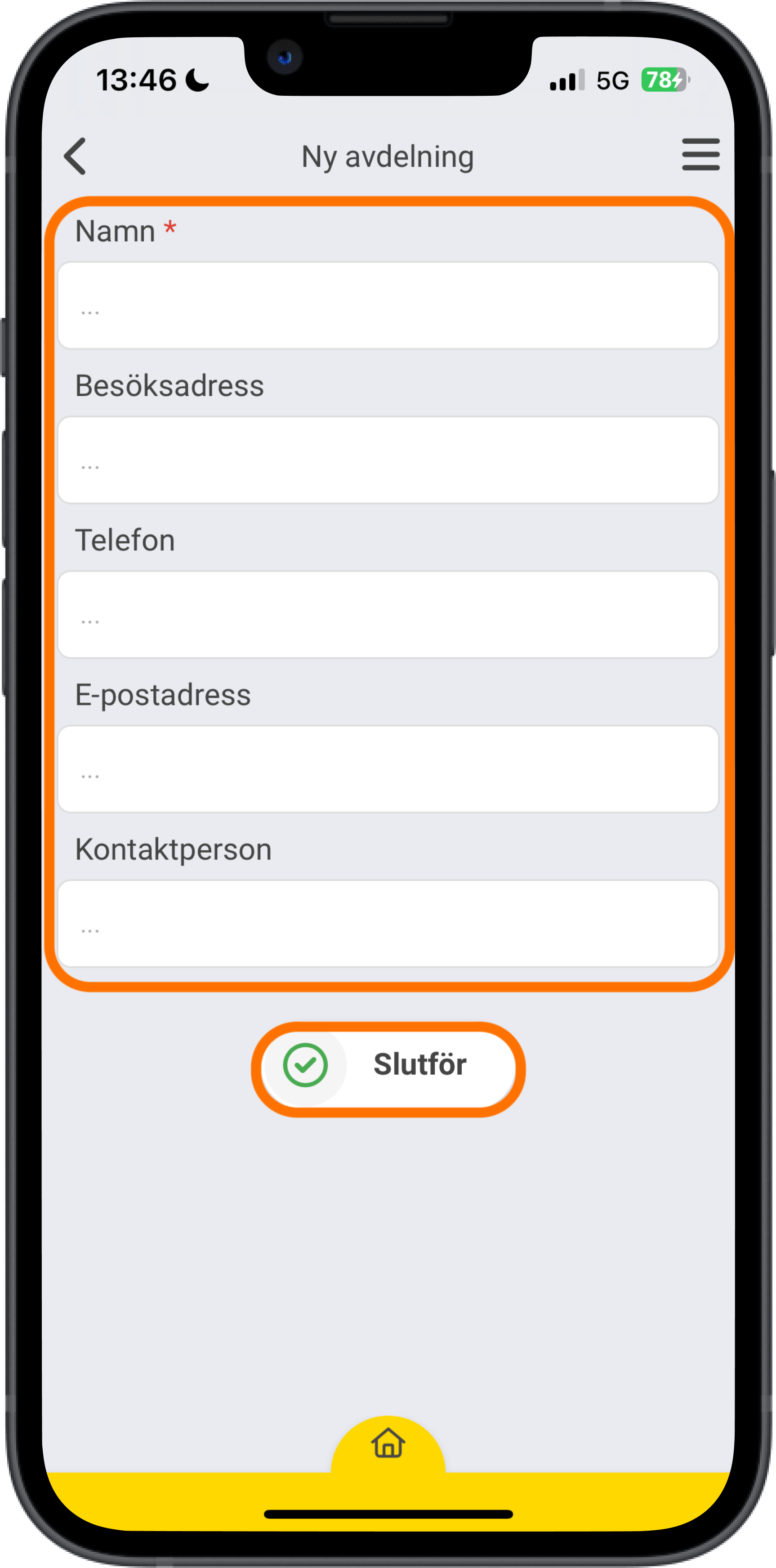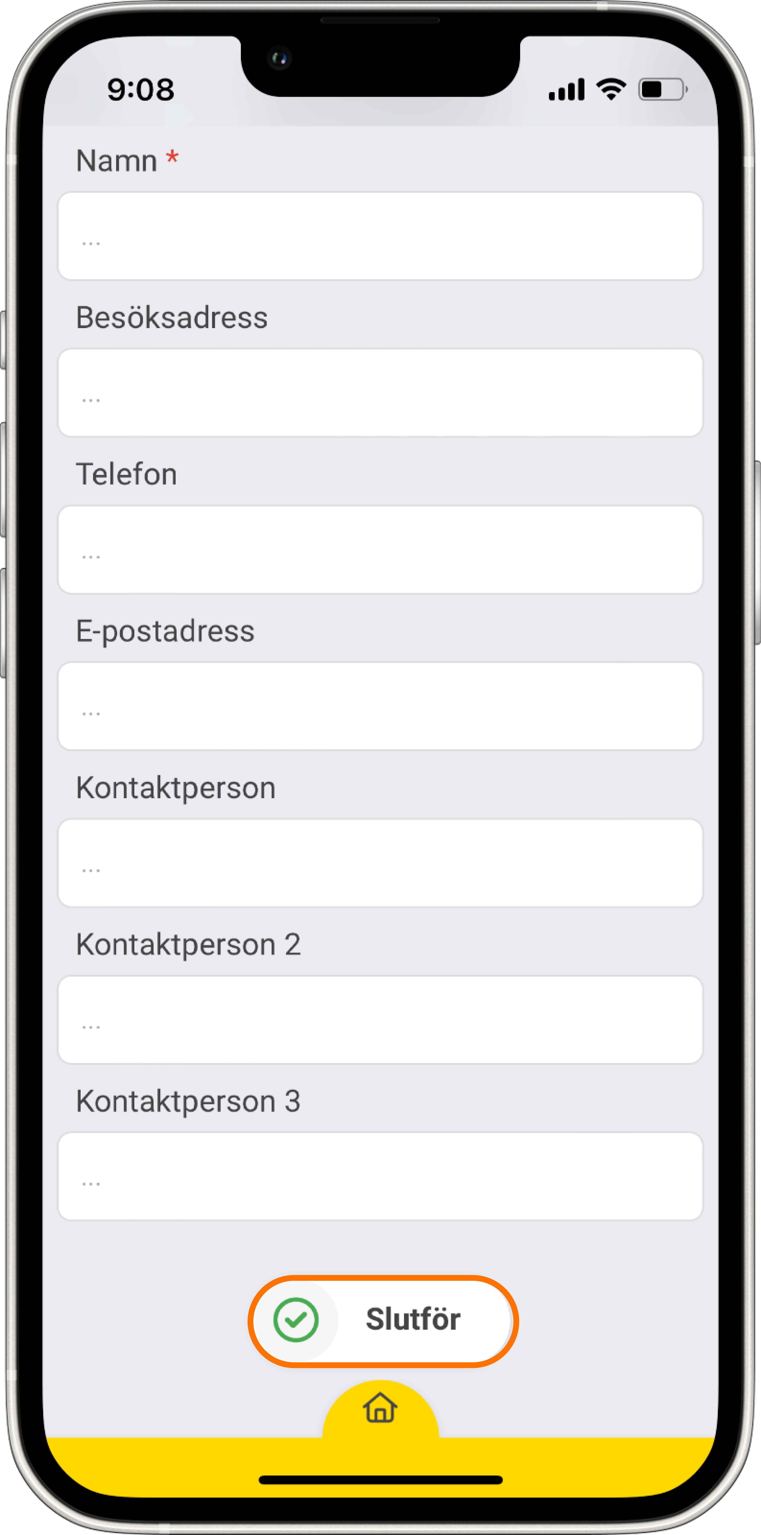 Observera: Det kan finnas andra fält du kan fylla i beroende på den förinställda formulärmall som skapats av administratören i kontrollpanelen (t.ex. en adress, kontaktperson, telefonnummer, e-postadresser, etc.).