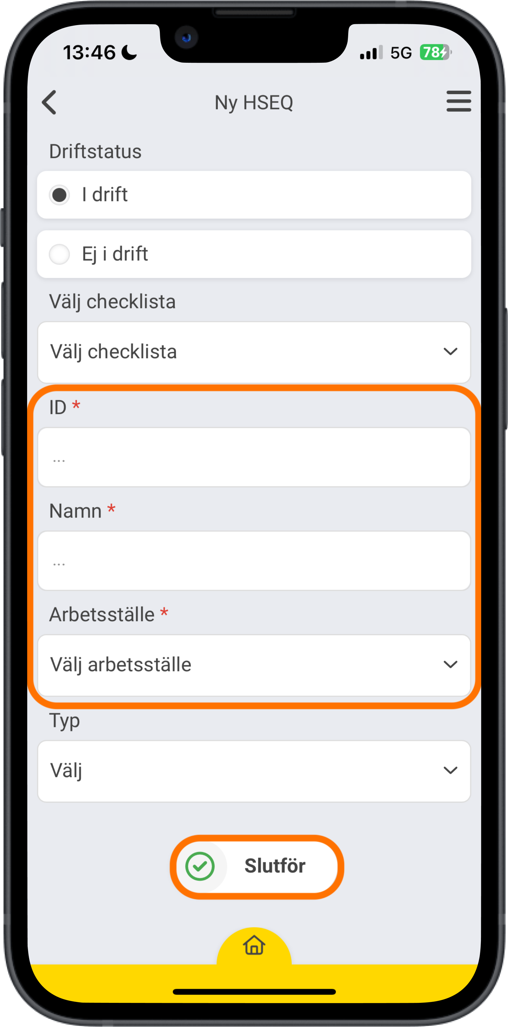 Säg att det finns nya faciliteter som du vill kunna utföra kontroller på. Det första du måste göra då är att skapa upp ett nytt arbetsställe. Det är på arbetsstället där allt händer, samtliga kontroller är kopplade till arbetsstället.