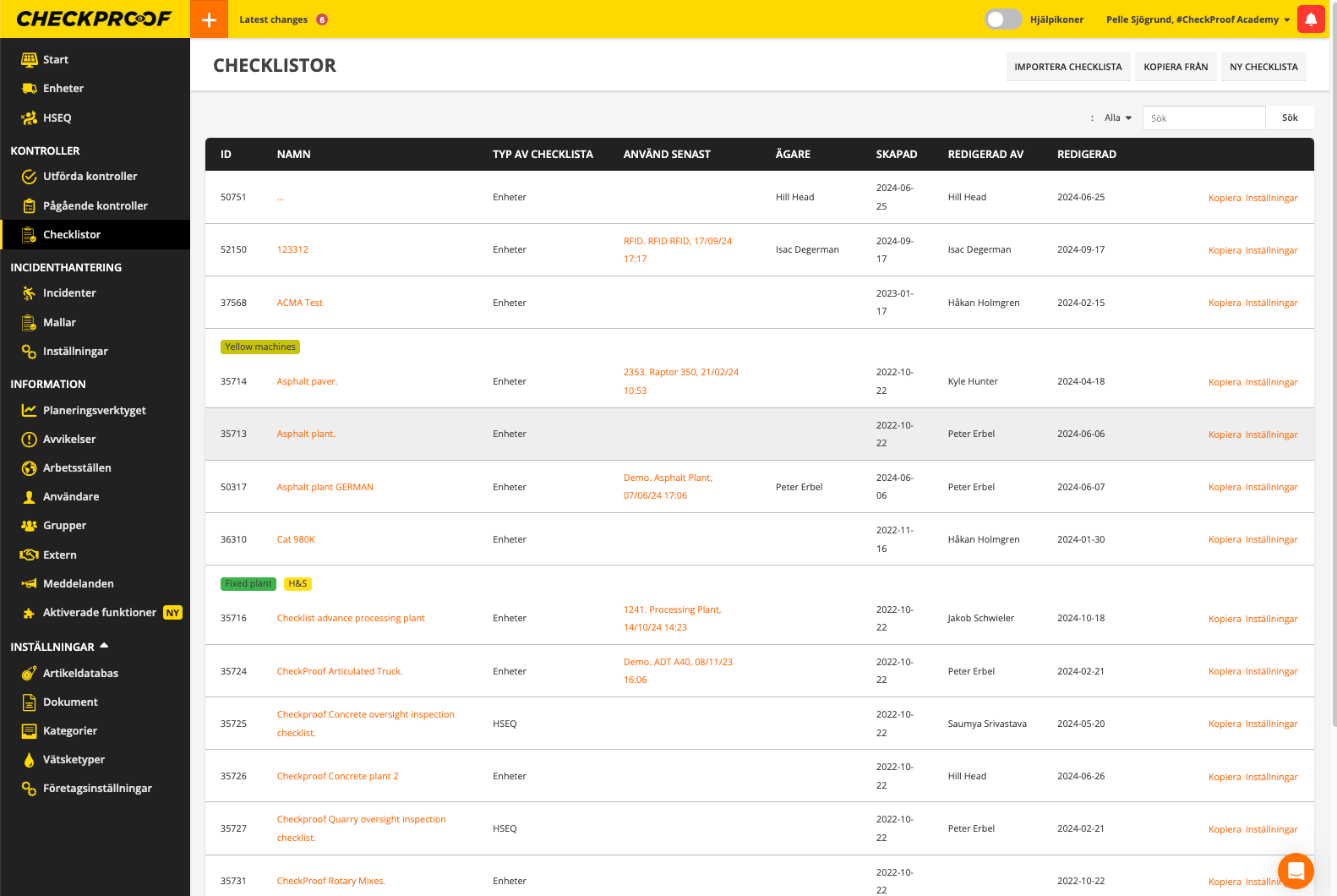 Checklist-taggar är ett utmärkt sätt att tagga alla dina checklistor. Till exempel, om du har flera checklistor relaterade till hjullastare, kan du skapa en tagg som heter “Hjullastare” och tilldela dina checklistor den taggen.