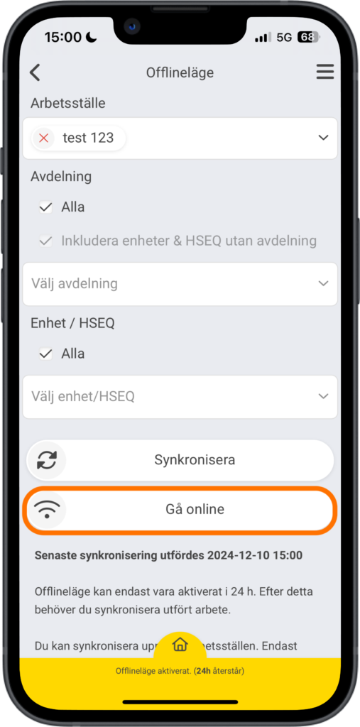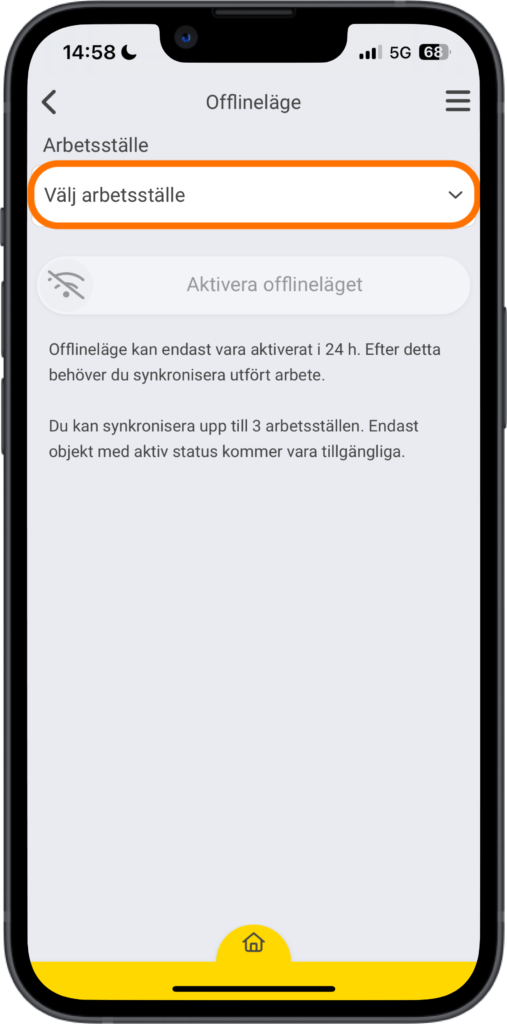Välj vilka arbetsställen och/eller avdelningar du vill ha tillgängliga offline genom att markera rutan bredvid objektet på listan.
