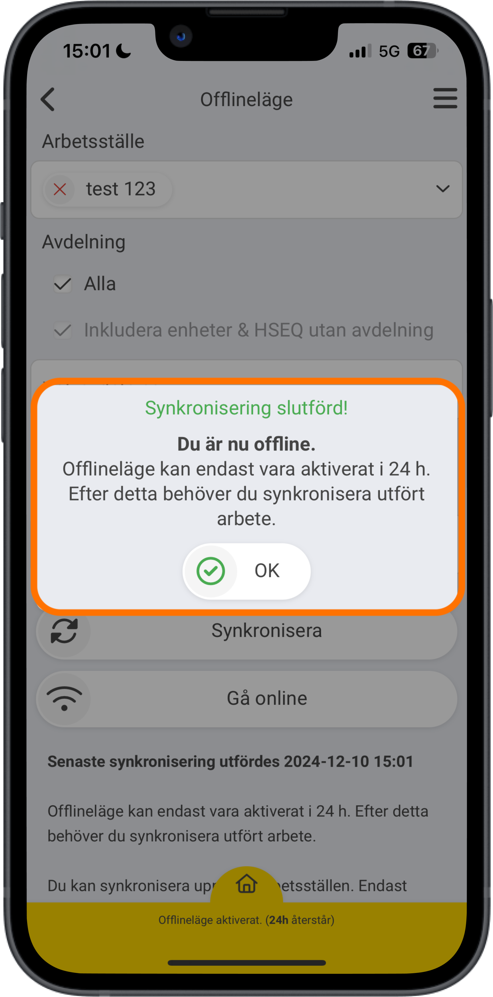 Denna åtgärd kommer att ladda ner den valda checklistan till din mobila enhet och den kommer nu vara tillgänglig i offline-läge.