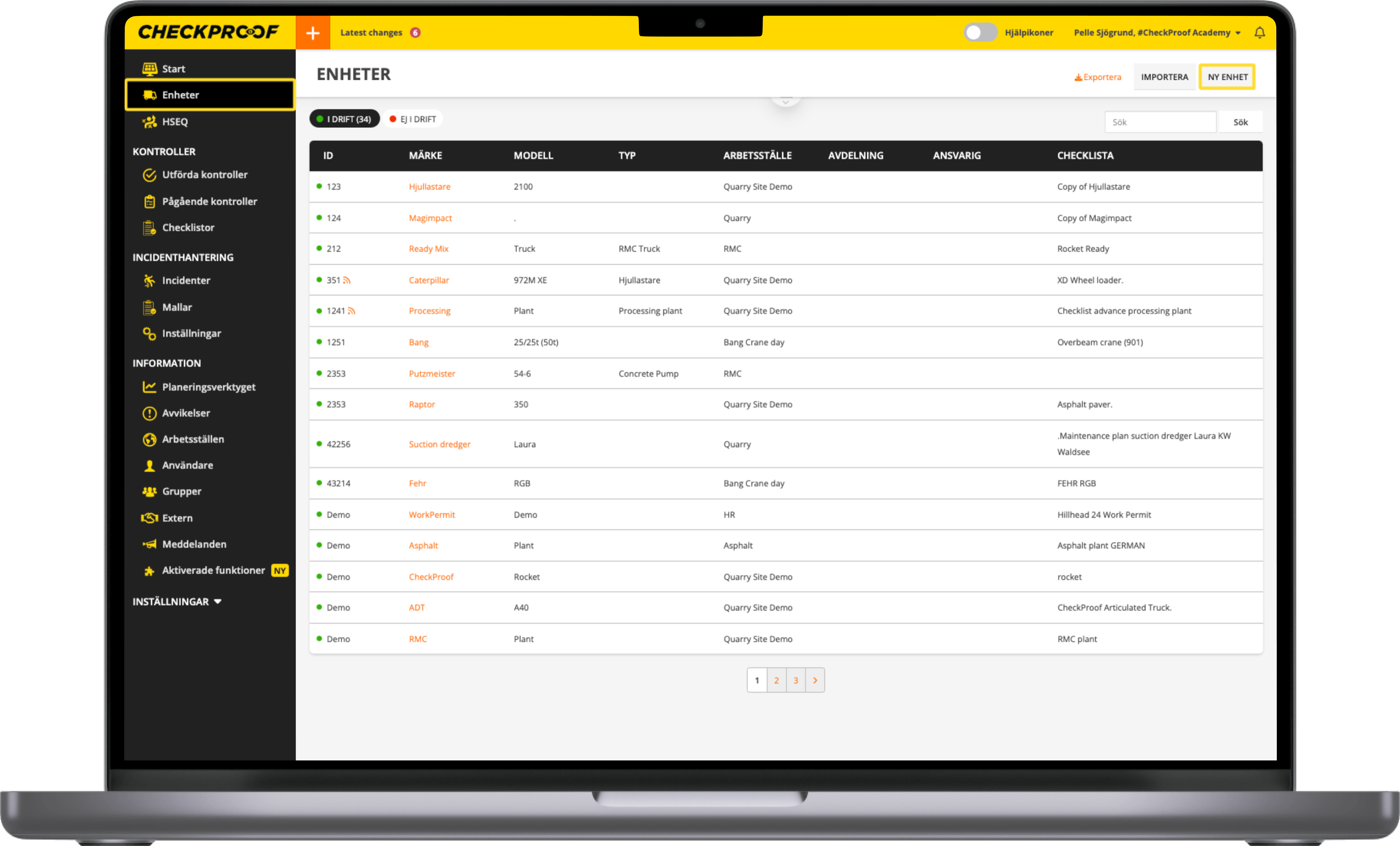 Genom den webbaserade admin-panelen kan administratören ta hand om all bakgrundsinformation som kommer att återspeglas i CheckProof-appen (till exempel checklistor för enheter och rundor, mallar för rapportering av incidenter samt bränslen och vätskor som kan användas för påfyllning).
