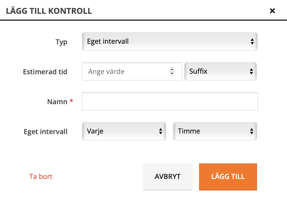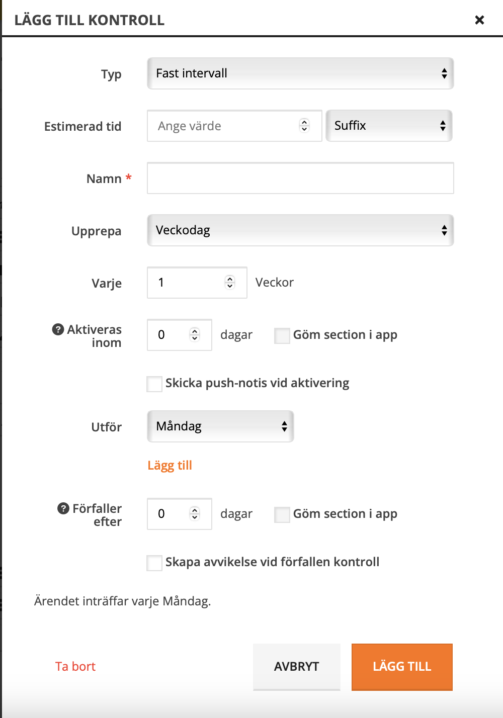 Du kan bestämma hur ofta kontrollen ska utföras (t.ex. varannan dag, varannan vecka, var fjärde månad, etc.).