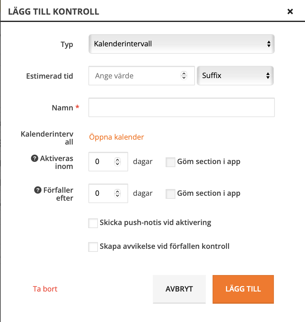 När du skapar eller redigerar kontroller i checklistorna kan du välja hur ofta dessa kontroller ska utföras.