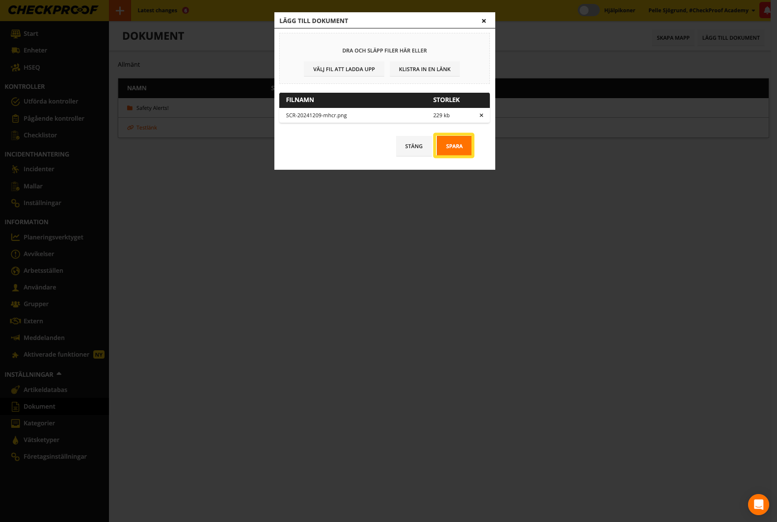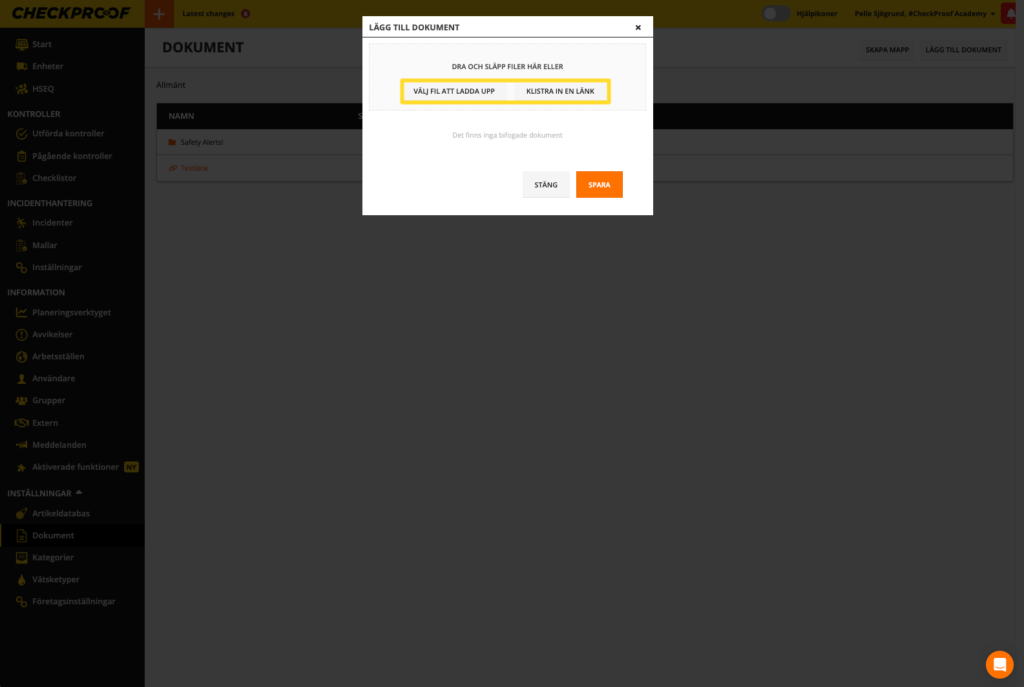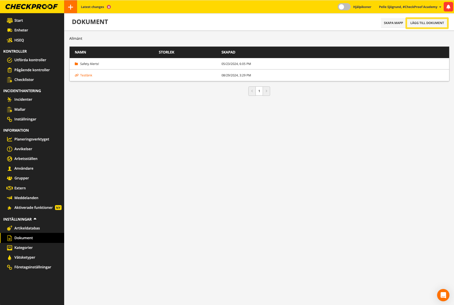 Som administratör kan du lägga till dokument i admin panelen som sedan kan visas från CheckProof-appen.