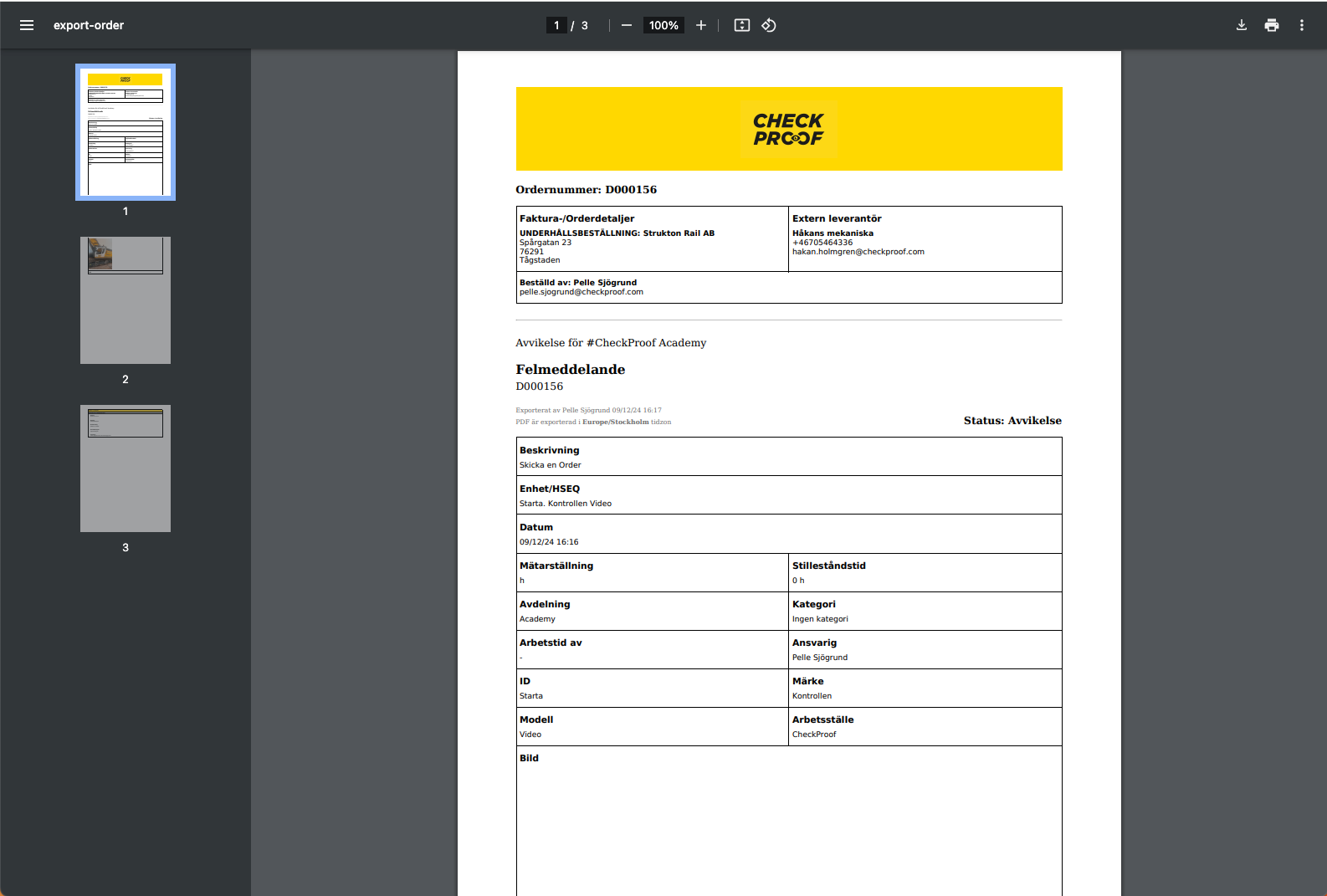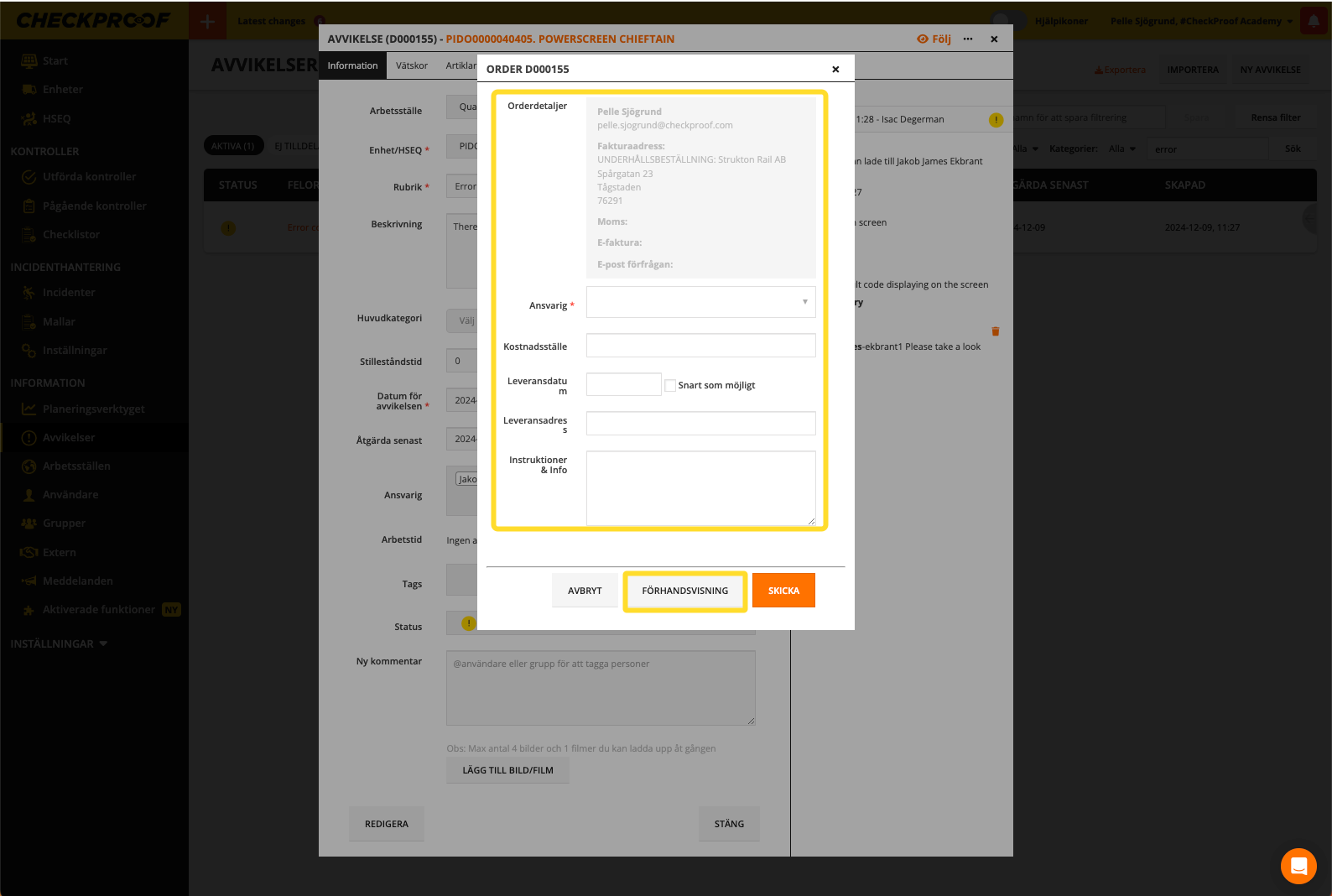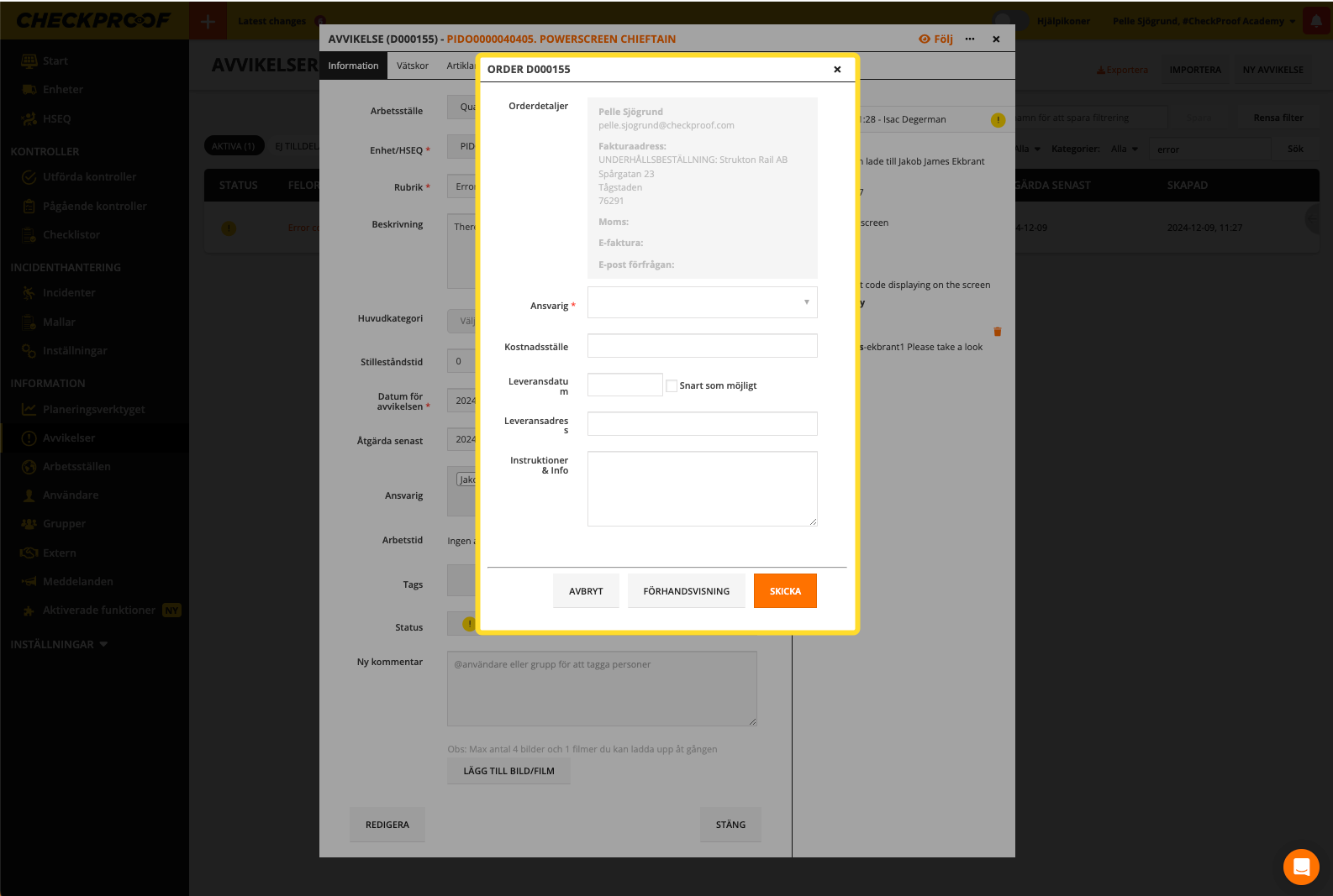 Bra! Nu vet du hur man lägger en order på en avvikelse till en extern partner från CheckProofs administrationspanel.
