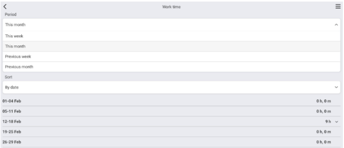 Du kan också filtrera efter datum eller efter arbetstids typ.
