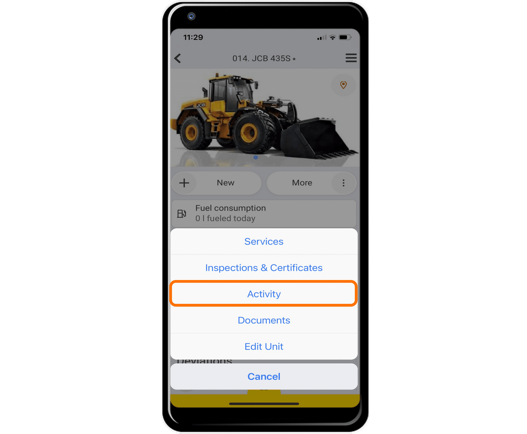 Here you have various actions to choose from. Select “Activity” to see the unit/round’s activity history.