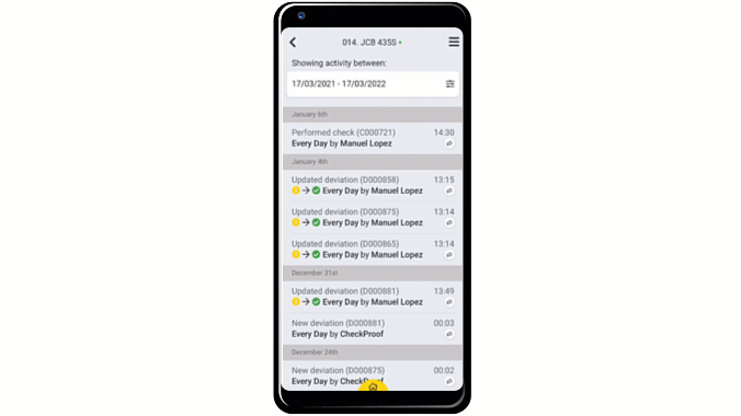 Let’s imagine that you want to see activities that were previously performed on a particular unit/round. You can do this with the CheckProof app!