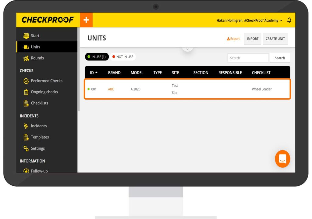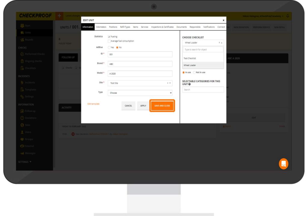 From the “Units” list, select the unit that you want to connect to the checklist.
