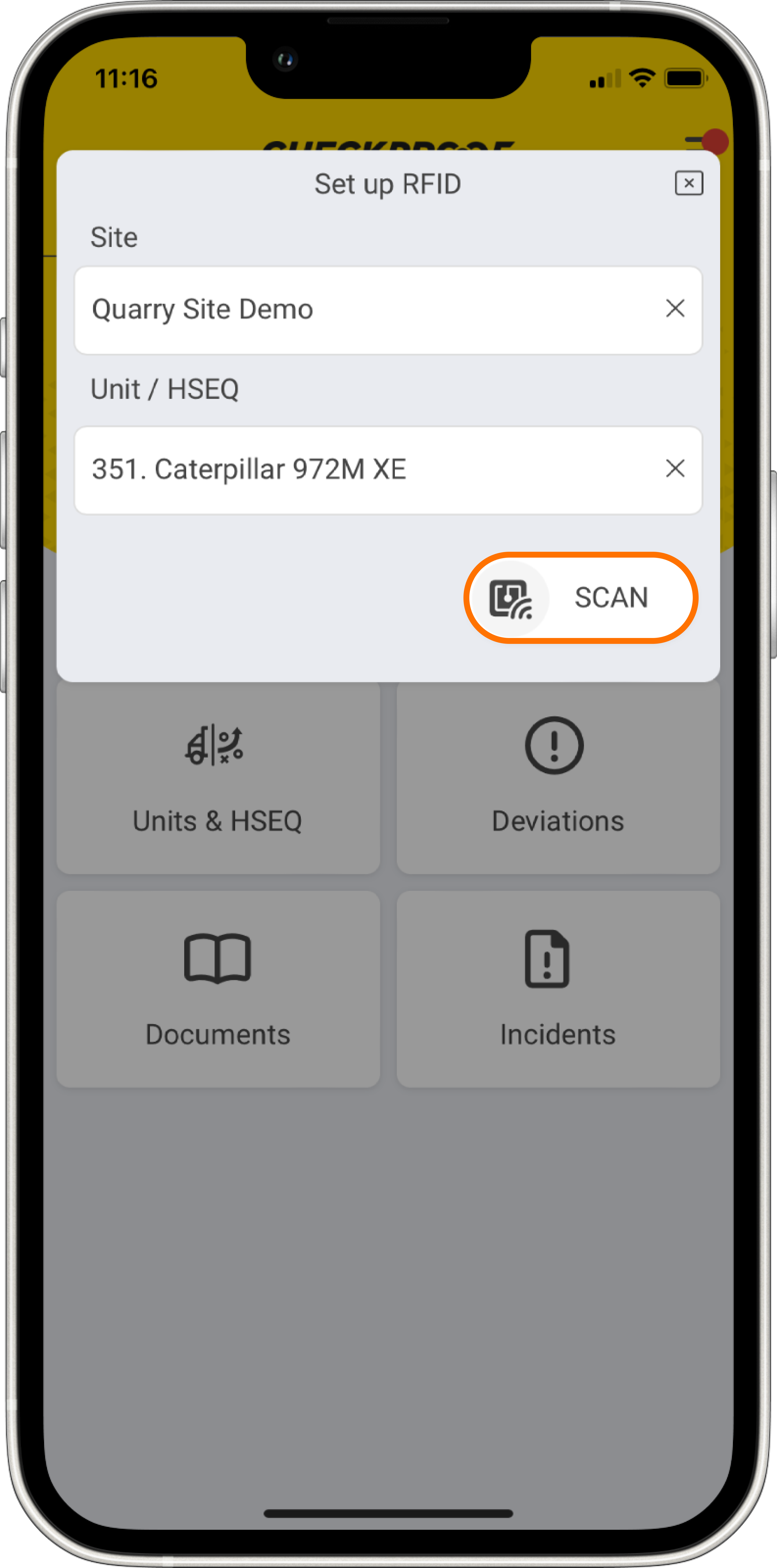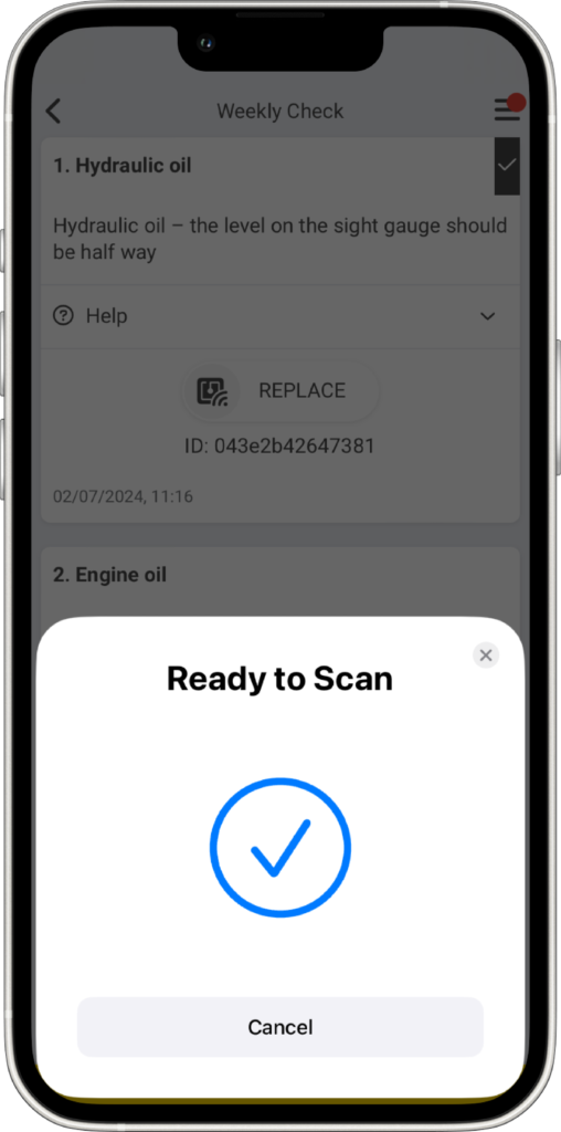 To do so, scan the RFID tag again so that the control point will be initiated the next time the tag is performed in the app.