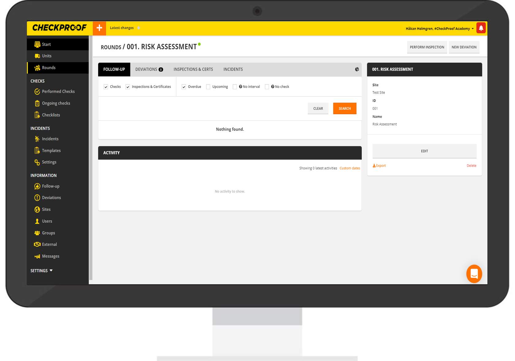 HSEQ do not necessarily need to be connected to a unit. They can be fire HSEQ, safety HSEQ, risk assessments, etc. Let’s learn how to create a HSEQ in the CheckProof app.