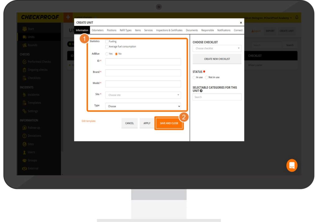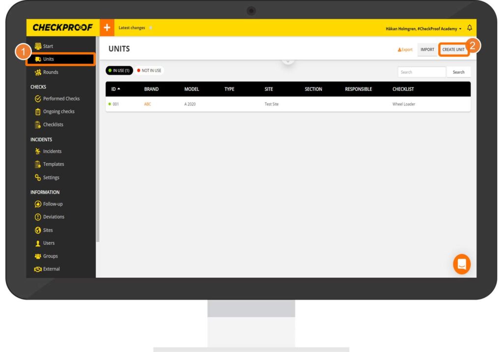 In order to be able to use CheckProof, a unit (asset) needs to be created. As soon as it is created you can start to add deviations and connect checklists to it