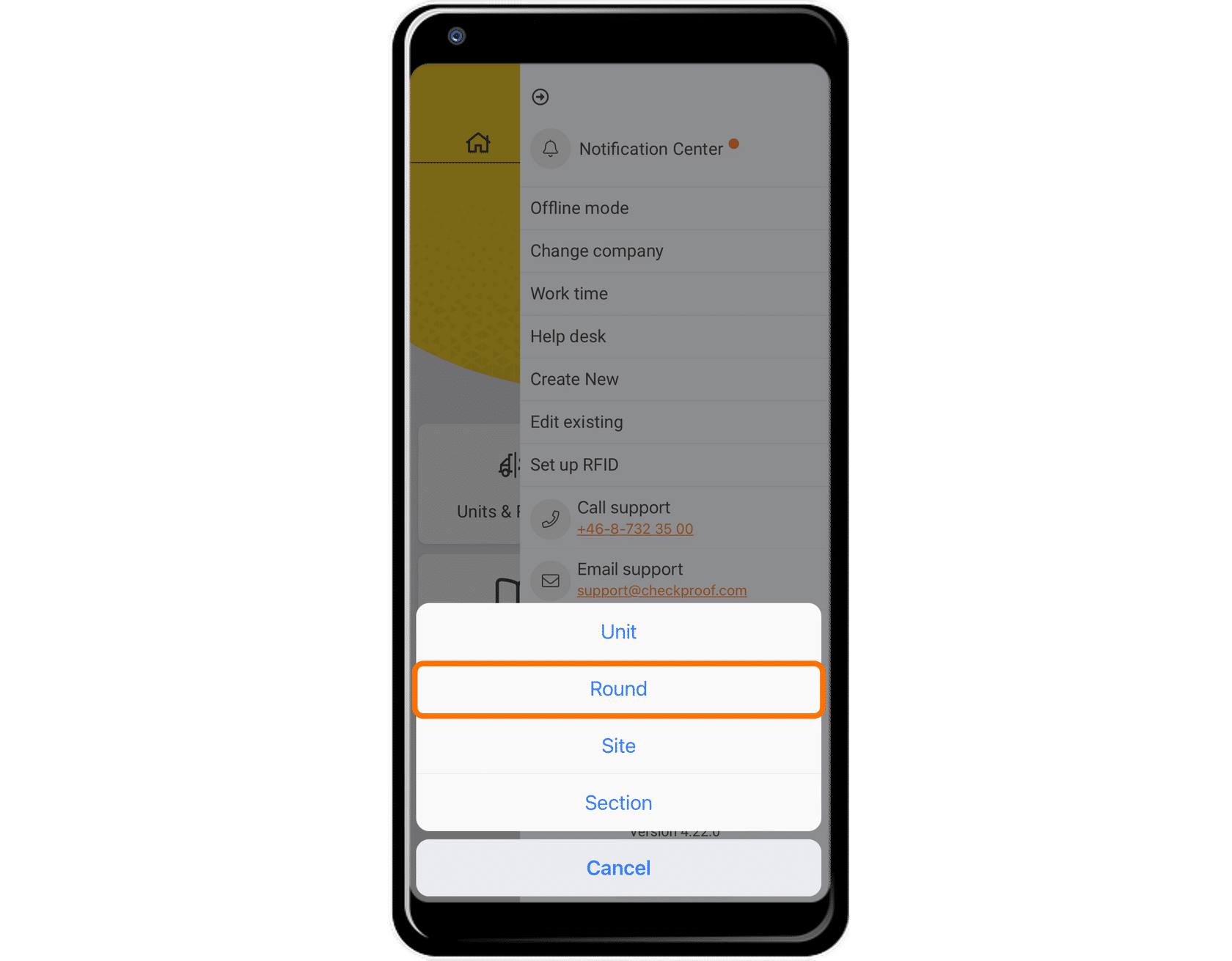 Rounds are used to perform checks on a wider scope than a unit. Let’s say that you want to do a general risk assessment of a site. You can create rounds to perform checks on later.