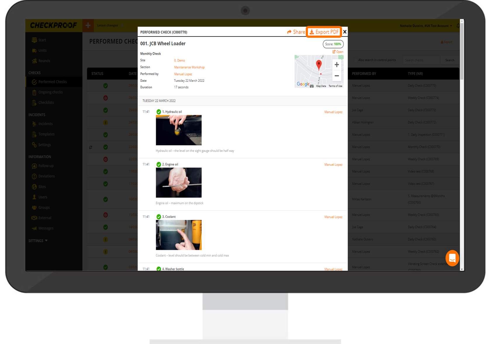 Now click on the “Export PDF” button at the top of the page to generate a PDF of the performed check.
