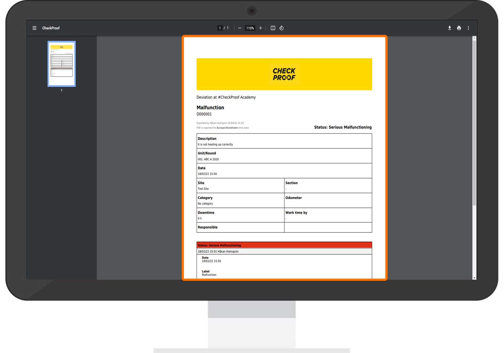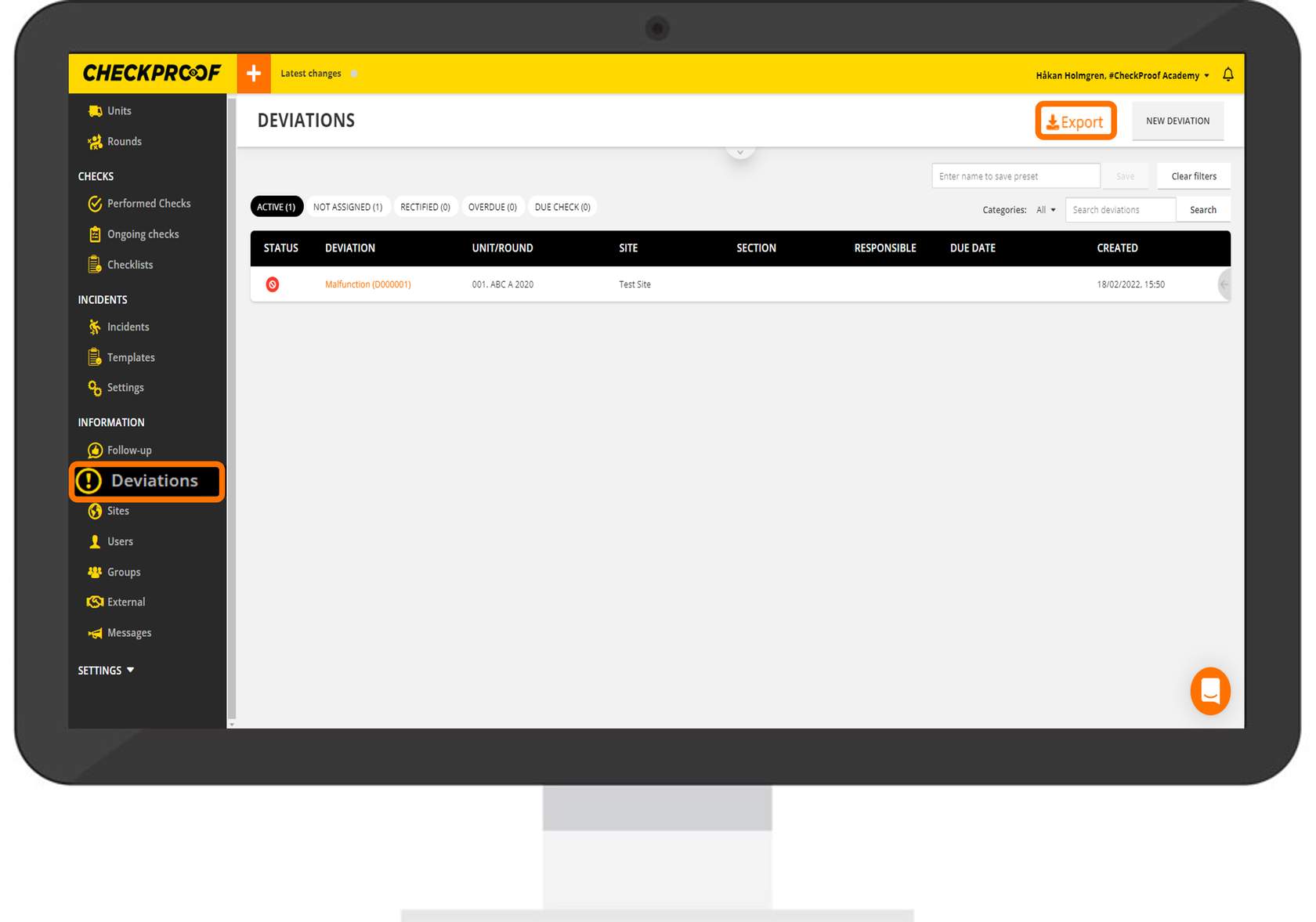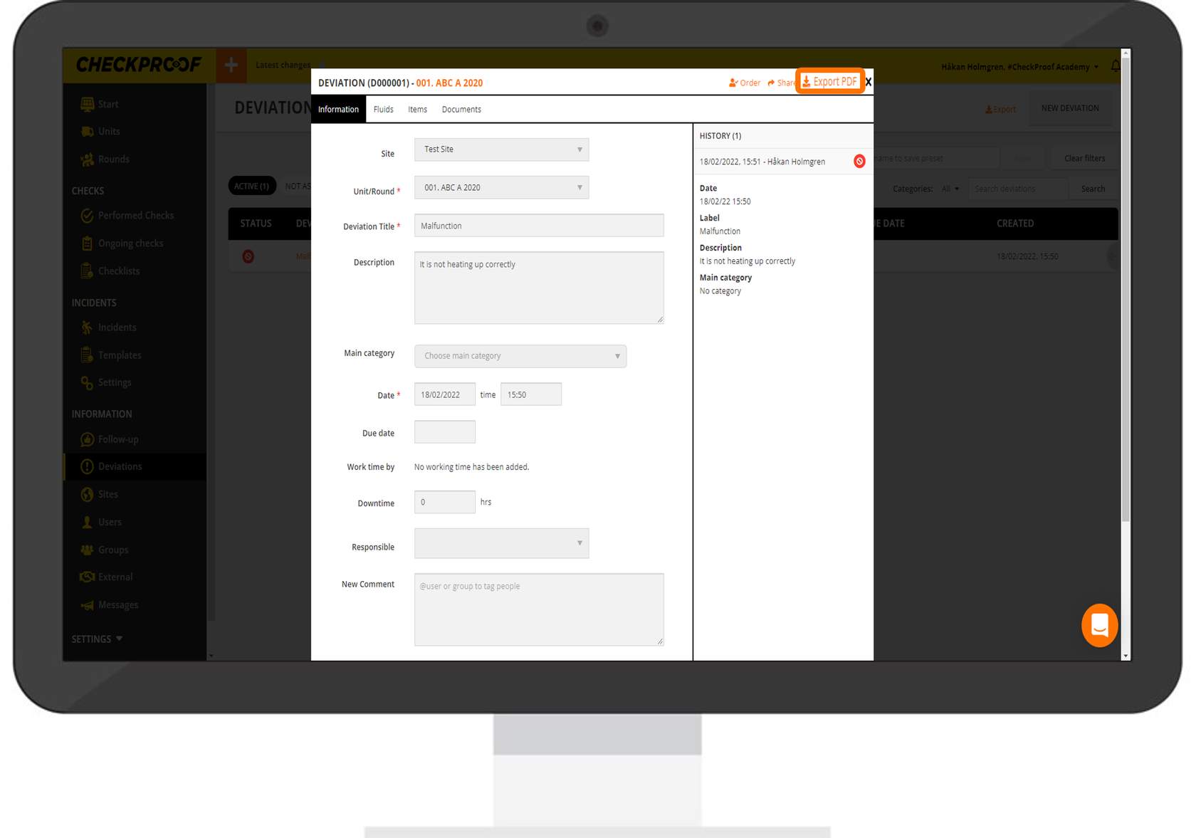 Here you will see the information related to this deviation. Click the “Export PDF” button in the upper-right corner.