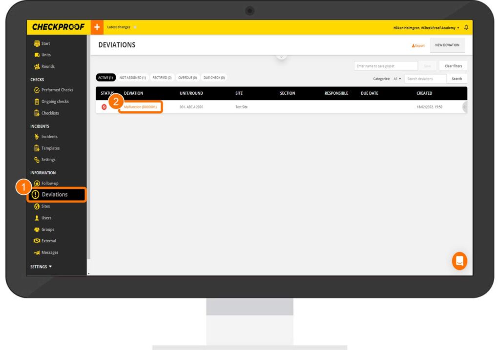 Here you will see the information related to this deviation. Click the “Export PDF” button in the upper-right corner.