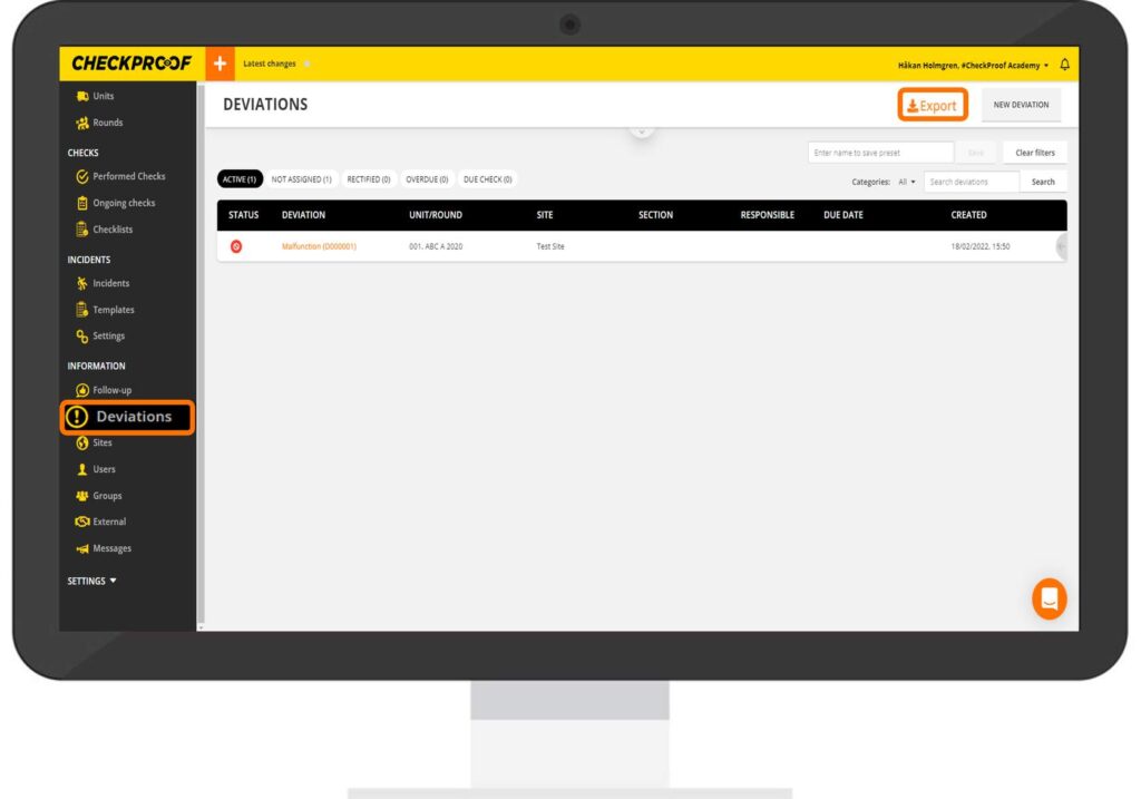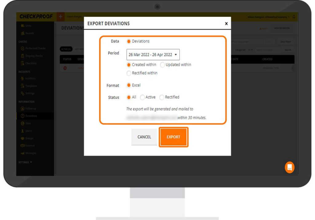 Great! Now you know how to export selected deviations from the CheckProof Admin Panel.
