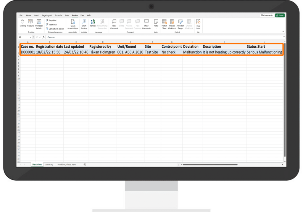 You can view the list of filtered deviations in the Excel spreadsheet that has been generated for you.