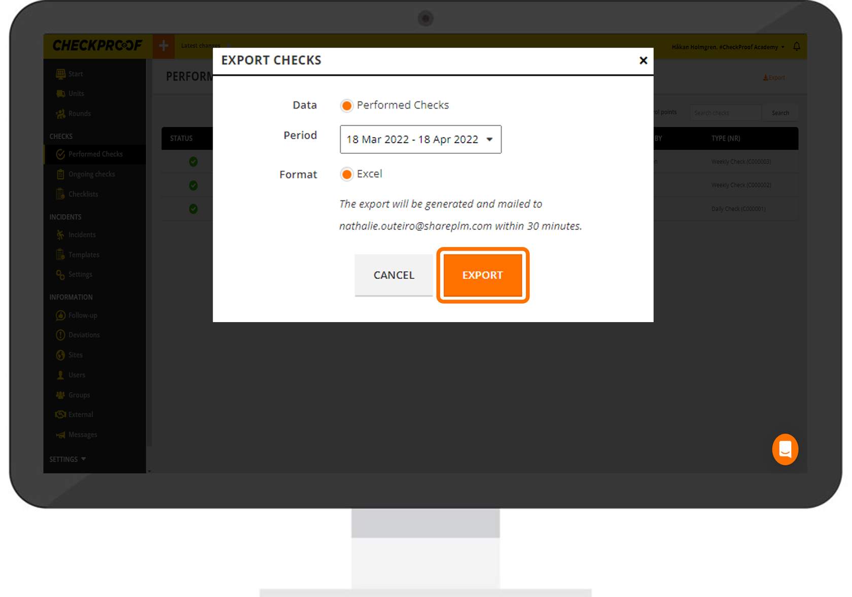 The report will be sent by email to the user you’ve entered with a link to open the report in CheckProof.