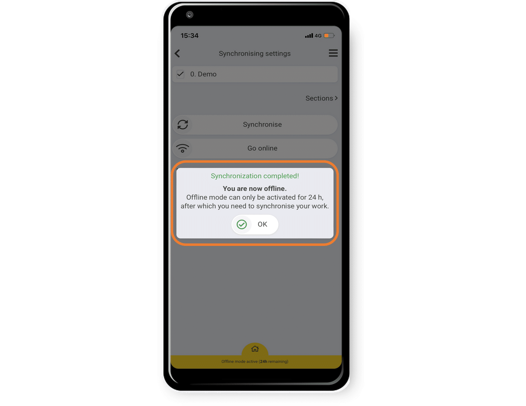 It will also download previously performed activities, such as deviations and performed checks.