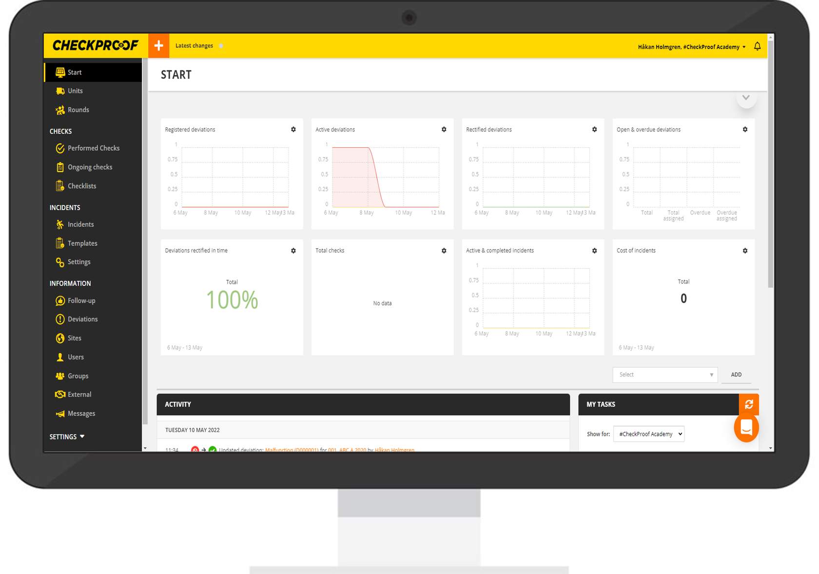 The users can perform checks and incidents using the checklists created by the admin