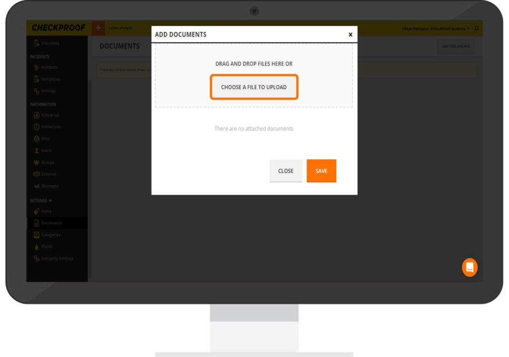 Now you are able to add documents. Click the “Choose a File to Upload” button which will allow you to select a document from File Explorer.