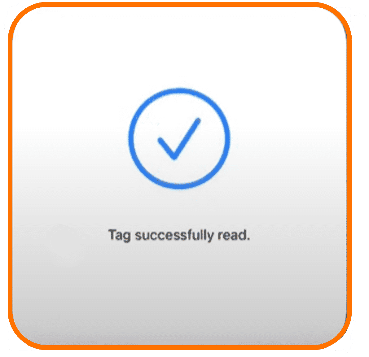 When your mobile successfully detects and scans a tag, you will receive the message “Tag Successfully Read” on your screen.