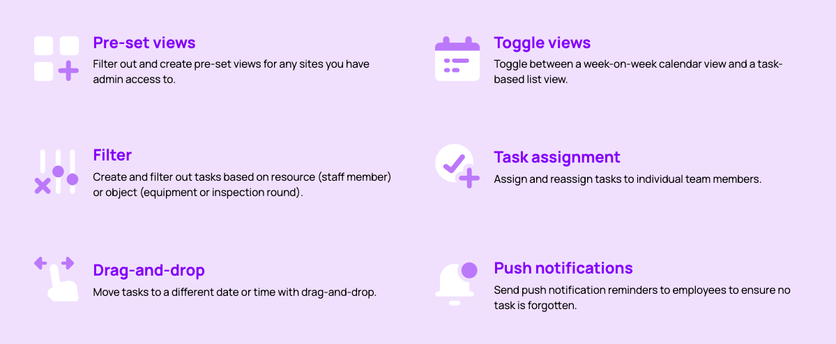 You can switch to a calendar lay-out to visualize all tasks in a weekly view (more views are planned).