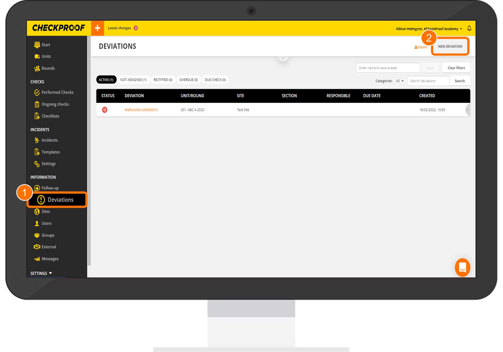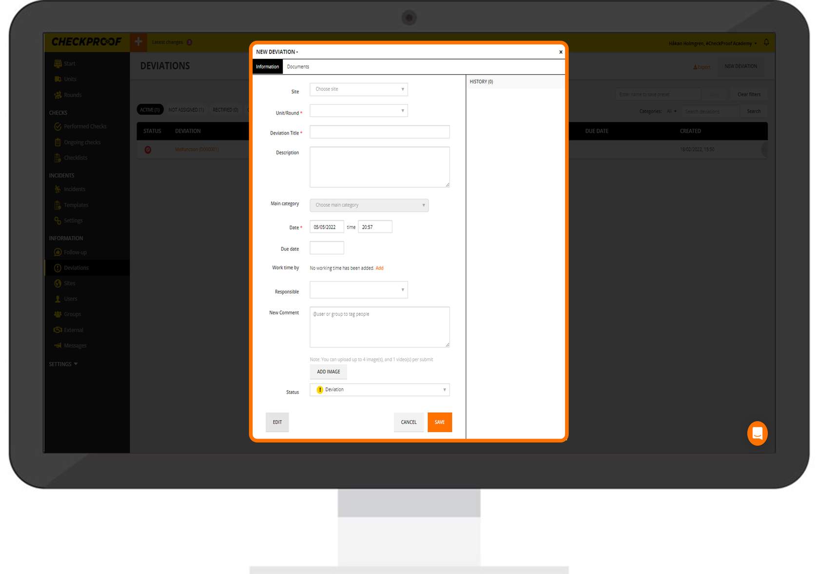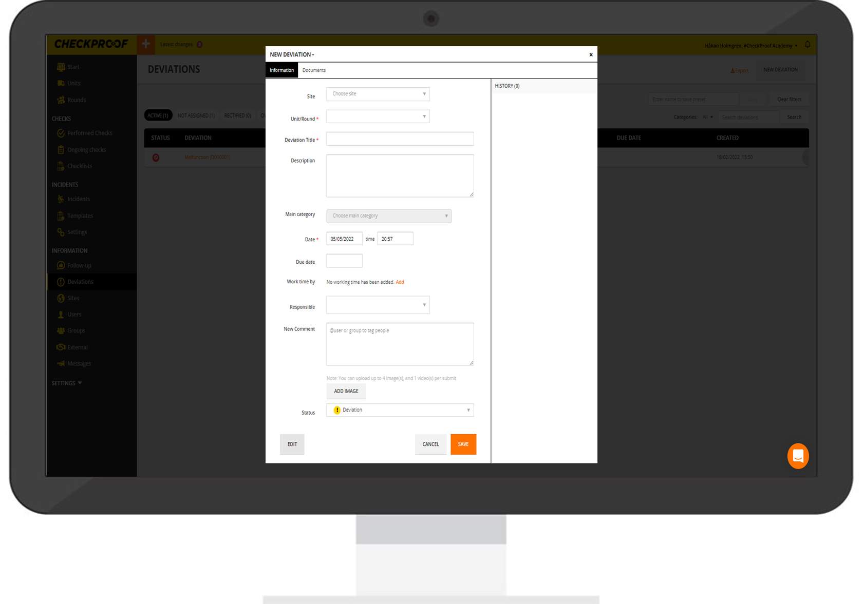 Let’s learn how to complete the form to report a new deviation.