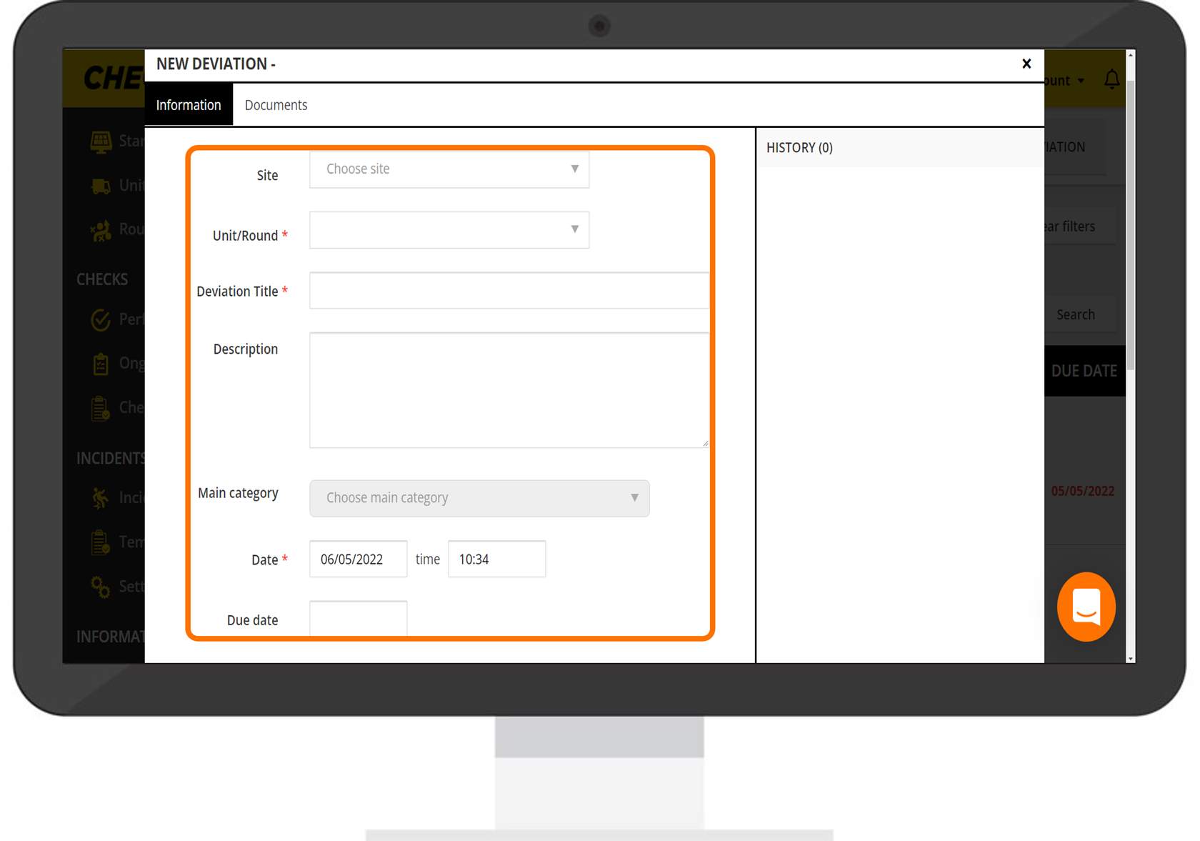 Now you will see a form to complete with information regarding the deviation. The fields marked with an asteriskare necessary. Follow the process below to learn how to complete this form.