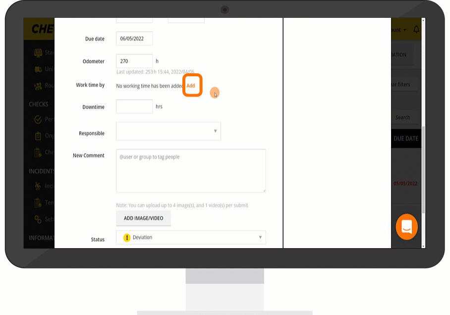 If you want to add work time you can click on “Add” and fill in when and what has been done to rectify the deviation.