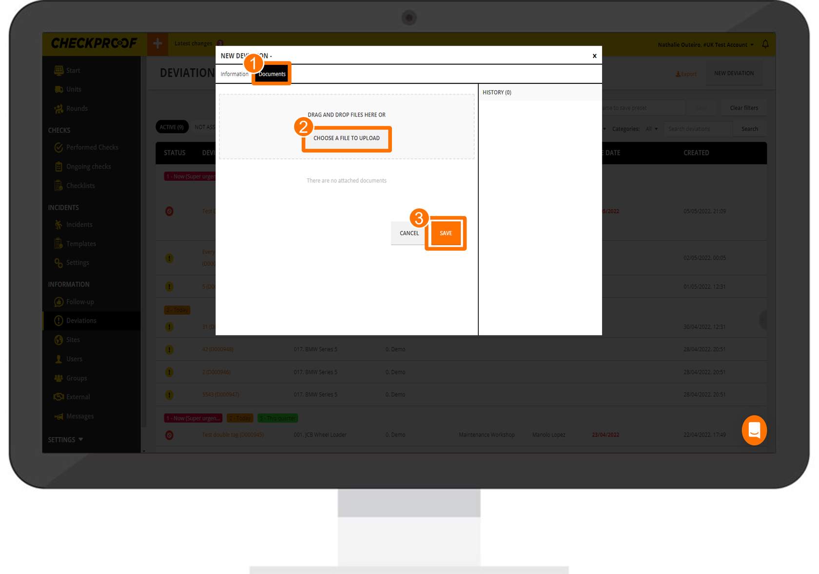 If necessary, you can also attach a document(s) to the deviation. To do this: