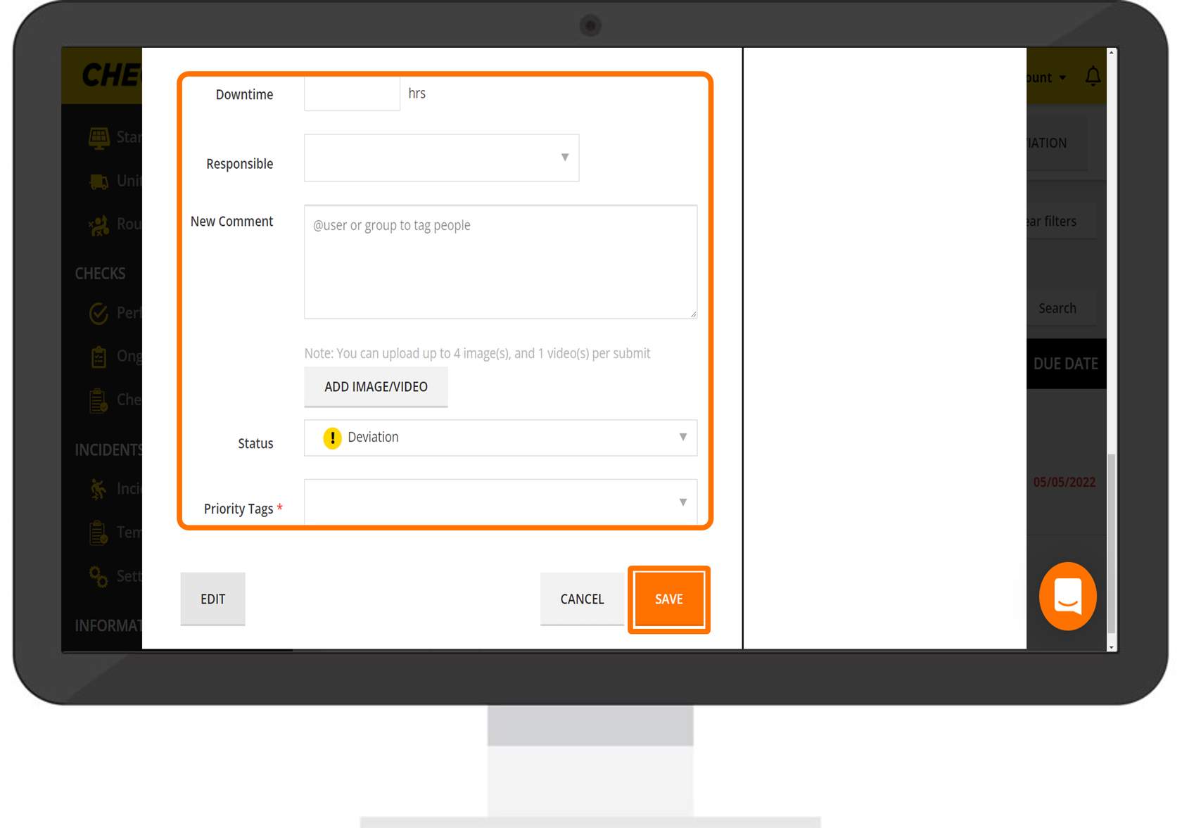 Description: You can choose to write a description of the deviation to provide further information.