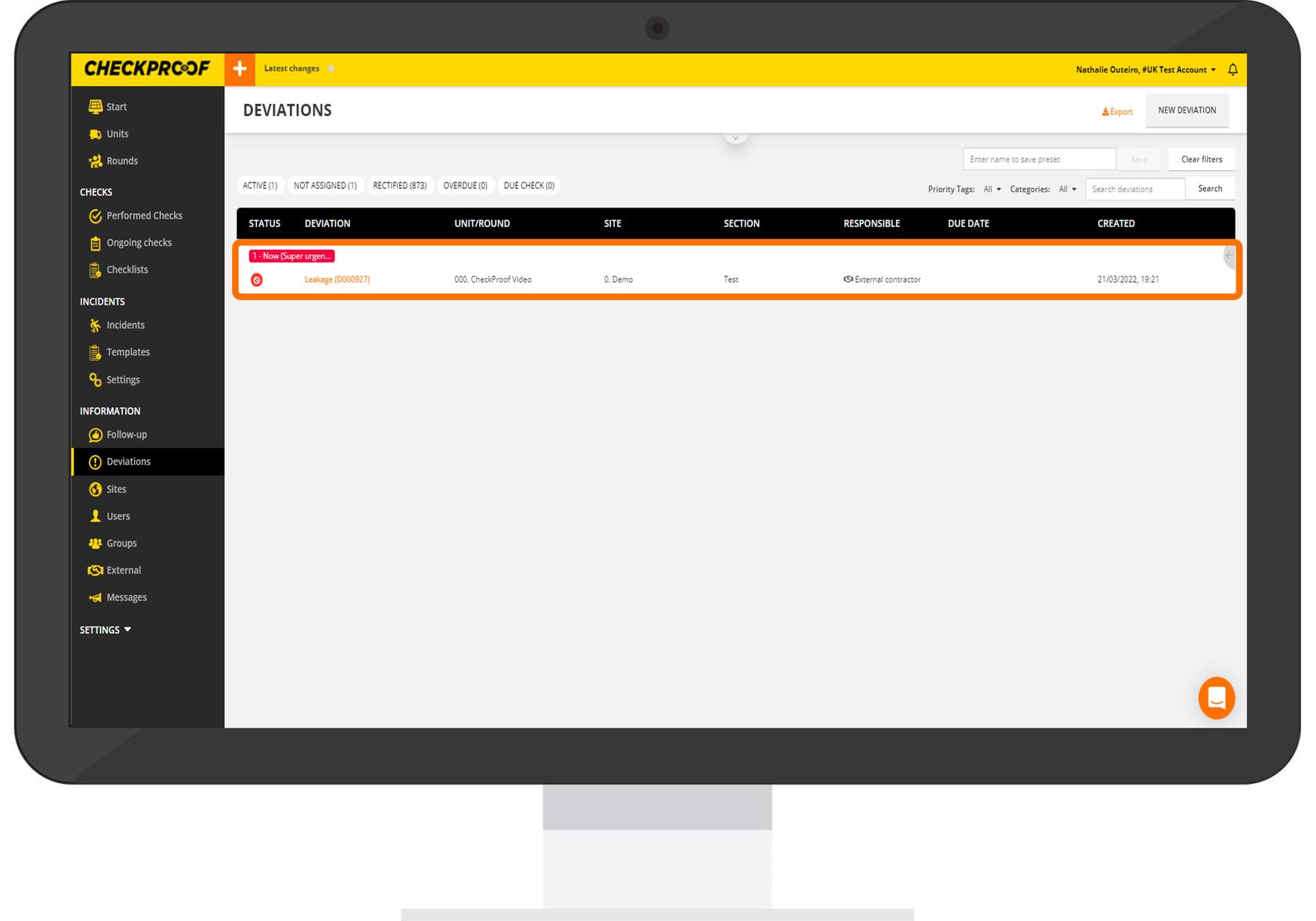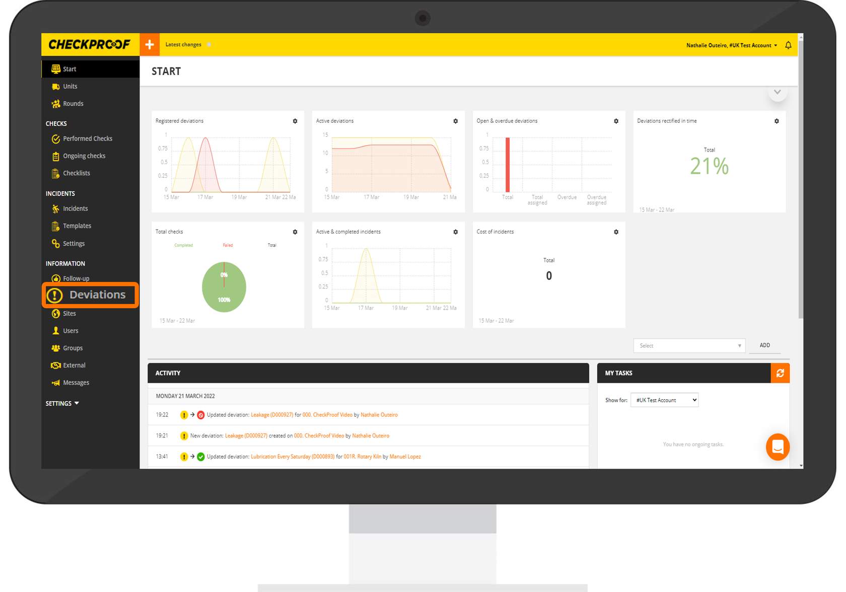 From the CheckProof homepage, click “Deviations” from the side menu.