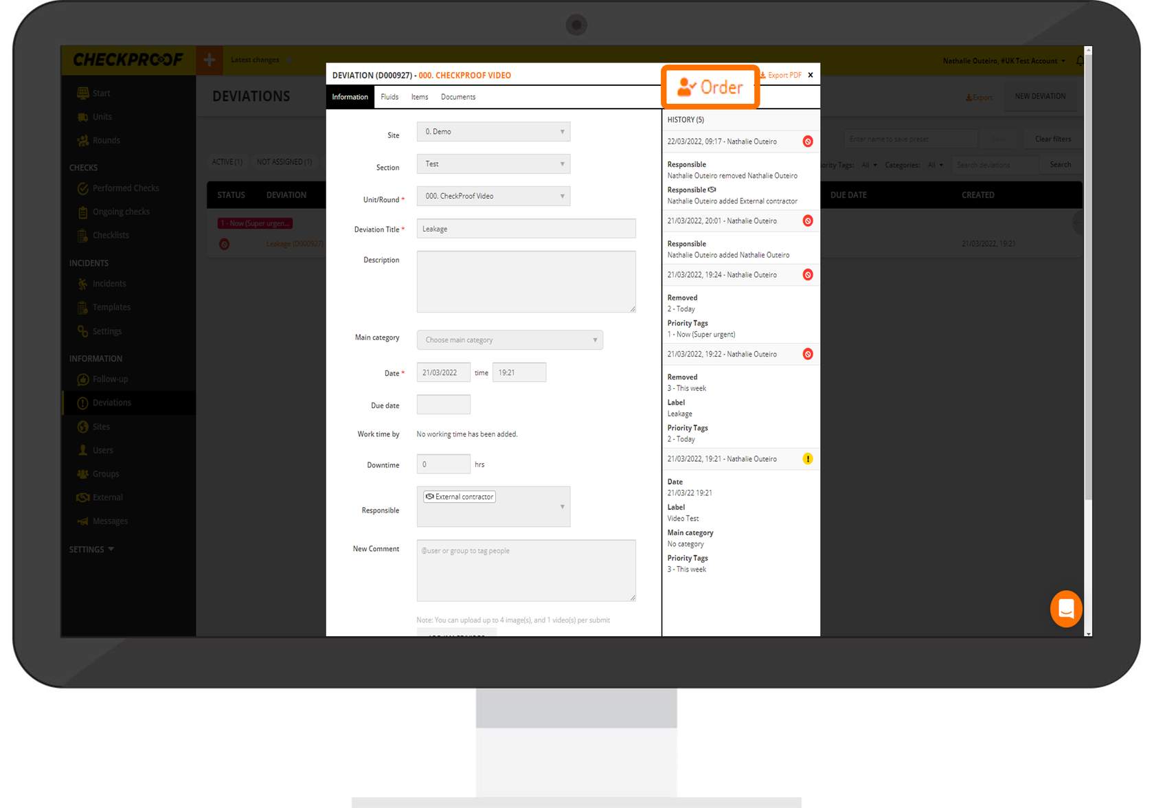 Now you will be able to view and edit information related to this deviation. Click the “Order” button at the top of the screen.