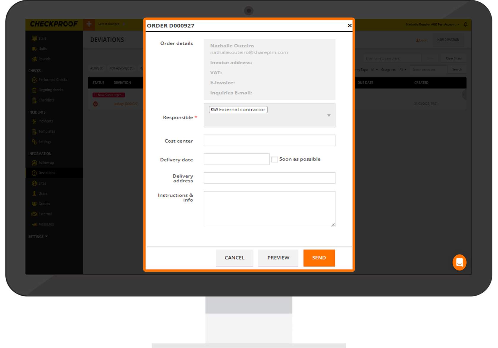 You know how to assign a deviation to an external partner. Now it is time to send the order to them through the CheckProof admin panel.