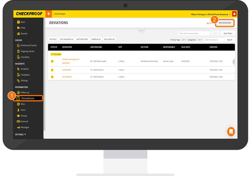 First, click on “Deviations” in the left-side panel. Then, click the “New Deviation” button at the top of the screen.