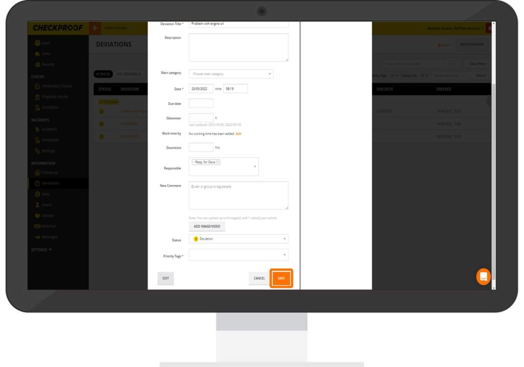 Once you have completed the form and assigned someone as responsible for this deviation, click on the “Save” button at the bottom of the form.