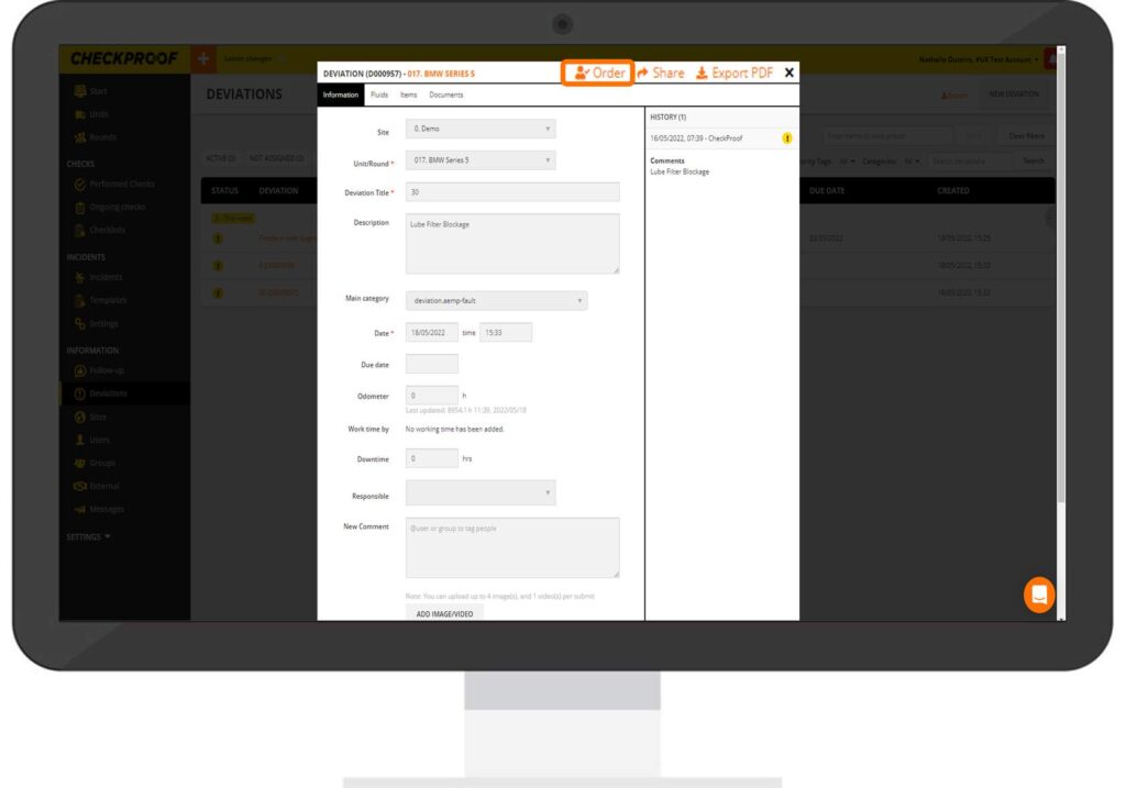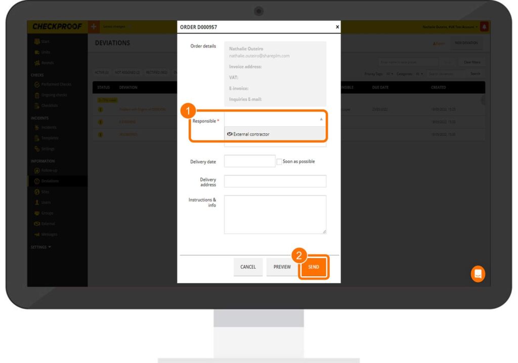 You can also choose who is to be responsible for a deviation when you go to place an order for an existing deviation.