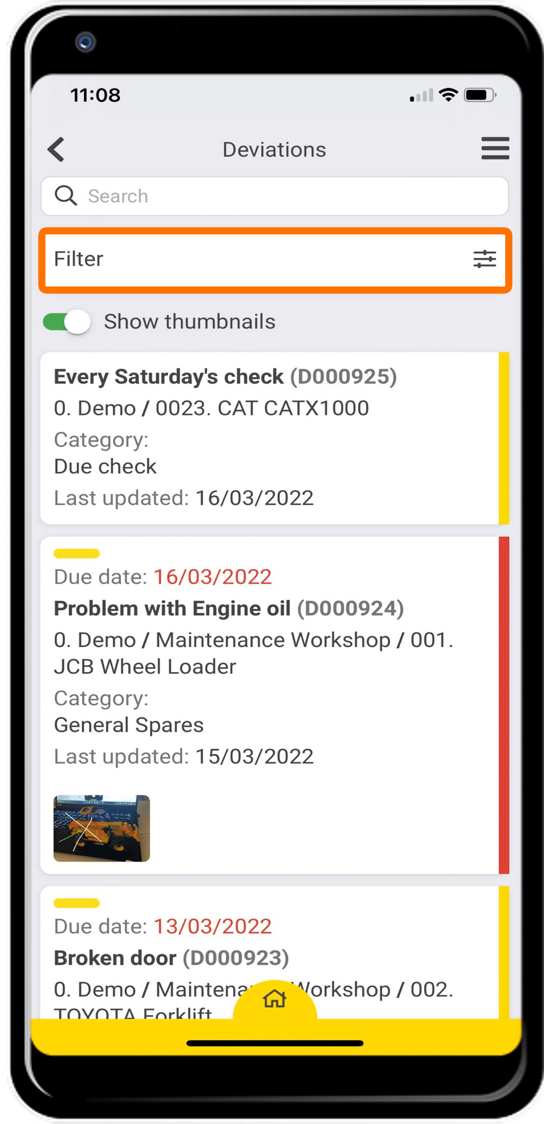 • Now you can see all your tasks that have the “Serious Malfunctioning” status.