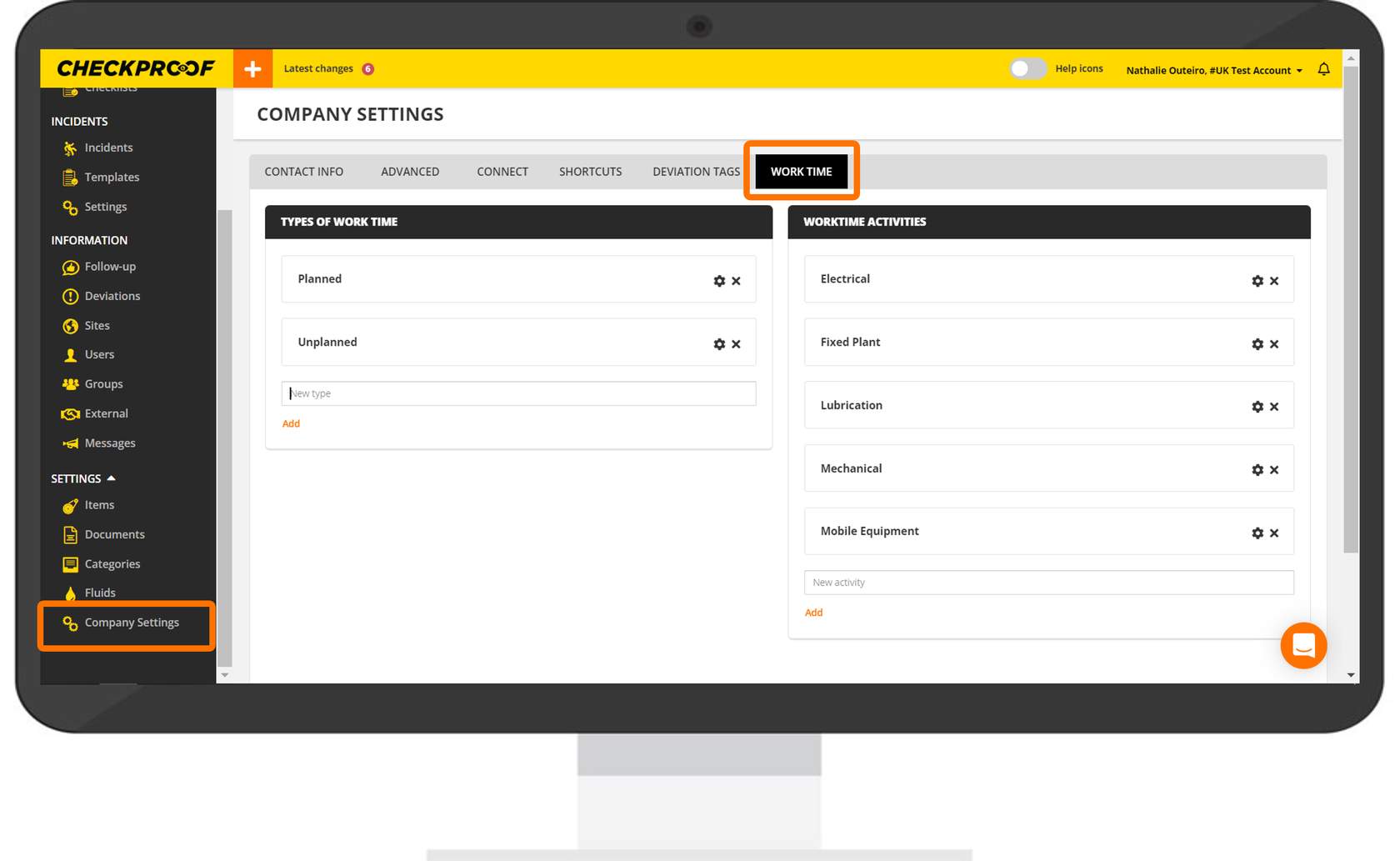The “Work Time” tab allows you to include different types of work time and create different work time activities.
