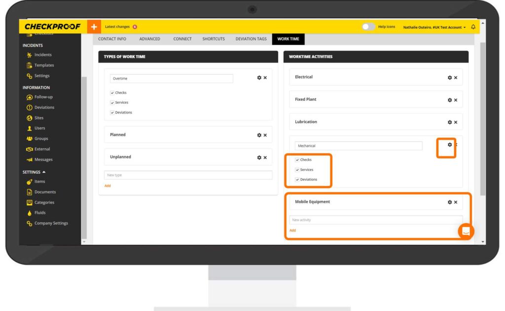 In this section, you can include the different types of time spent performing a check or reporting a deviation.